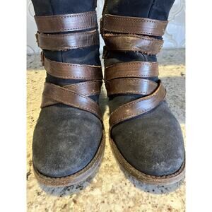 Freebird by Steven FB-Jules Blueish Black Suede Leather Side Zip Boots Size 7