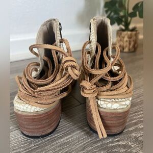 Freebird by Steven JoJo Lace Back Snake Print Ankle Bootie in Cream. Size 8