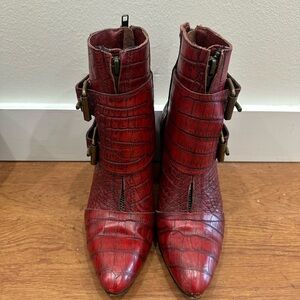 Step out in style with these striking red crocodile-embossed ankle boots. Perfect for adding a bold touch to any outfit.