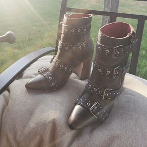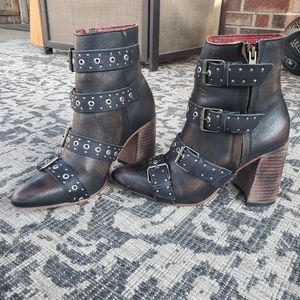 EUC worn twice, less than 30 minutes each time. The 3.75" heel was too high for my liking. These are beautiful Freebird Joust booties, distressed black leather, size 8. These run small, would best fit a 6.5 - 7 in my opinion. Possibly a 7.5 but not an 8!! Will ship in original box.