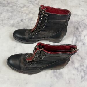 Freebird by Steven Liverpool Black Laced Red Zipper Combat Boots Sz 11
