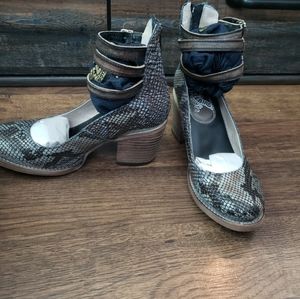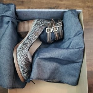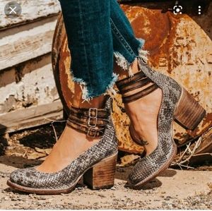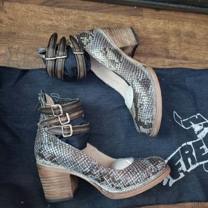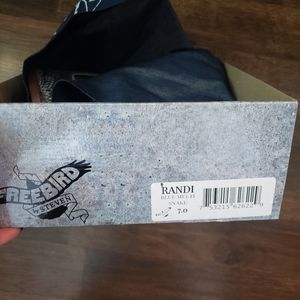 BNIB never worn. Freebird by Steven Randi sz 7 blue multi snake, currently not in stock online. Fits TTS possibly even up to a 7.5. Missed return window and didn't like the fit for me but love the look of the shoes, the blue snake is gorgeous especially with the brown straps for contrast. Includes original box and inserts.