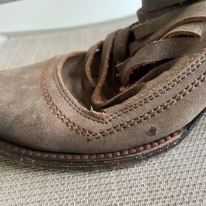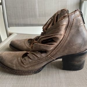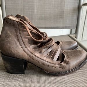 Awesome Freebird 'Sabra' Brown Leather Strappy Booties, Sz 7... in good condition with intentional distressing and some wear marks. See photos.