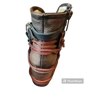 Freebird by Steven Shoes Crue Leather and Suede Bootie Red Black Size 6