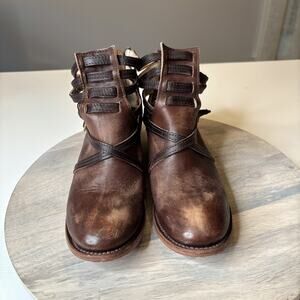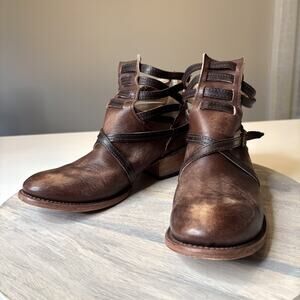 Freebird by Steven Stair Brown Leather Cutout Ankle Boots Buckle Strap Women’s 9