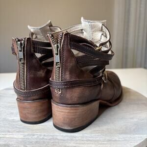 Up for sale: Freebird by Steven Stair Brown Leather Cutout Ankle Boots Buckle Strap Women’s Size 9. This item is in great overall condition — please see photos for details. Original purchase price was $295.