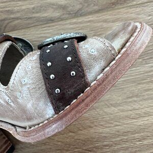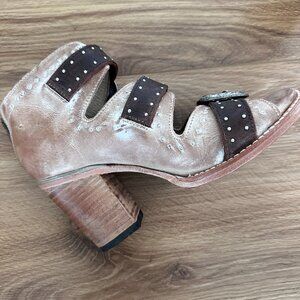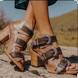 These are open toe western-inspired booties.