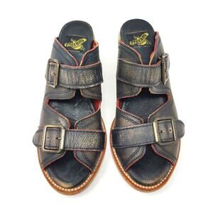 Freebird by Steven Womens 7 Caprice Distressed Block Heel Sandals Leather Black