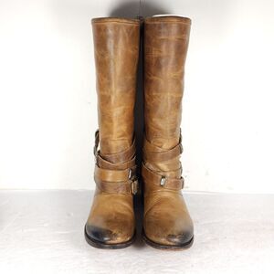 Freebird by Steven Women's Drove US8 Leather Distressed Brown Straps Buckle Western Boots.