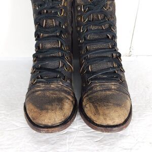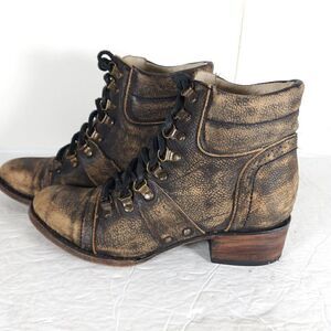 Freebird by Steven Women's Gage US7 Brown Distressed Leather Moto Boots Booties .