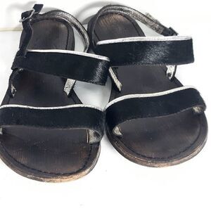 Freebird by Steven Women's Aruba Black Calf Hair Strappy Flats sandals Eu39 Us8-8,5