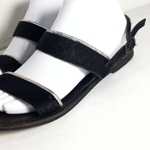 Freebird by Steven Women's Aruba Black Calf Hair Strappy Flats sandals Eu39 Us8
