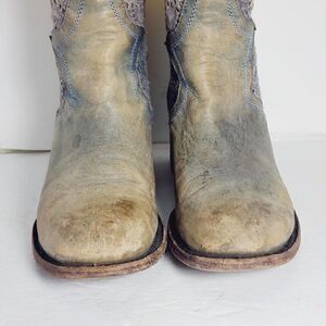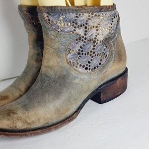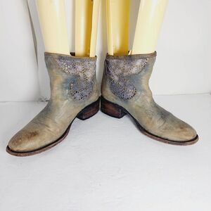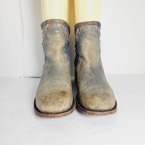 Freebird by Steven Women's CABCRO US 6M Blue Leather Crochet Ankle Pull On Boot