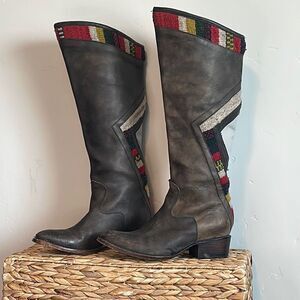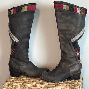 Free-bird Aztec Grey Leather Boho Colorful Wool Highlights Tall Boots 7