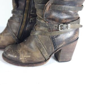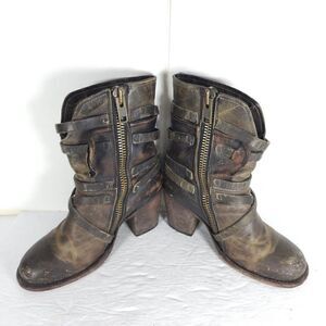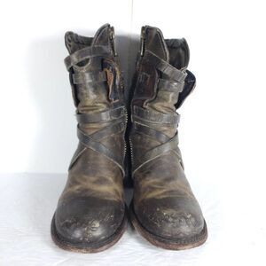 Freebird By Steven Women’s Baker US7 Leather Distressed Strappy Biker Boots
