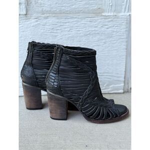 Freebird Washed Black Bela 100% Leather Cross Braided Ankle Western Boho Boots