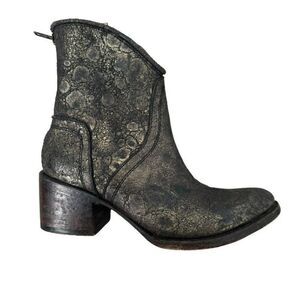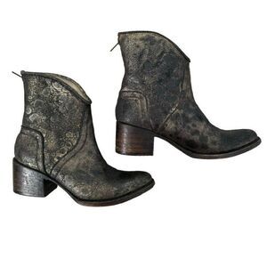 Freebird by Steve Madden Black Gold Distressed Western Ankle Boots Peak Sz 7