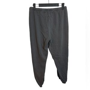 Pre owned excellent condition. The only flaw is a tiny spot on the right leg (pictured). Adorable charcoal gray sweatpants with purple and black logo. WOMENS size xs.