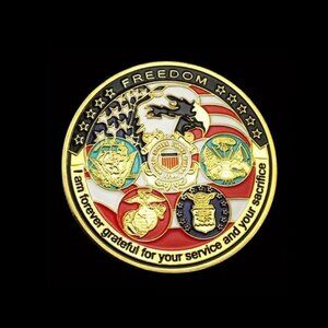 This challenge coin is a great way to show your appreciation for those who serve or have served our country. It features the logos of all the branches of the US military and the message "I am forever grateful for your service and your sacrifice." It's a high-quality coin that would make a thoughtful gift for a veteran, active-duty military member, or anyone who supports our troops.