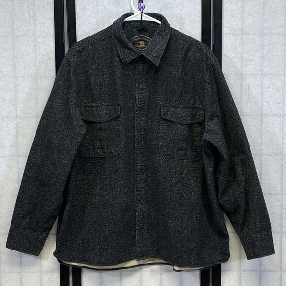 Freedom Foundry Brushed Cotton Flannel Shirt Jacket Black White Marled Button Up