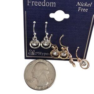 Freedom Hypoallergenic Nickel Free Drop Earrings Set In Silver Gold & Rose Tone