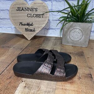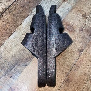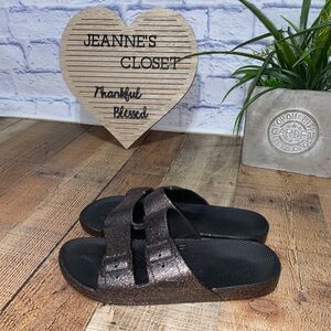 Freedom Moses multicolor glitter black slides slip on sandals