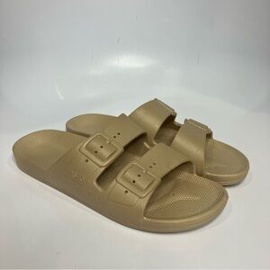 Freedom Moses sandals 2 strap slides slip on tan size 10-10.5