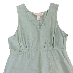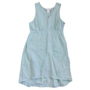 Freedom Trail by Kyodan Linen Blend Dress Size M Mint Green V Neck Pockets