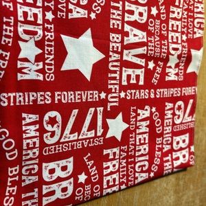 Handmade red and white cotton printed family and friend’s FREEDOM FABRIC! Reversible too! Measures 8.5 x 42” in length. Perfect for your table tops or dresser! Enjoy!