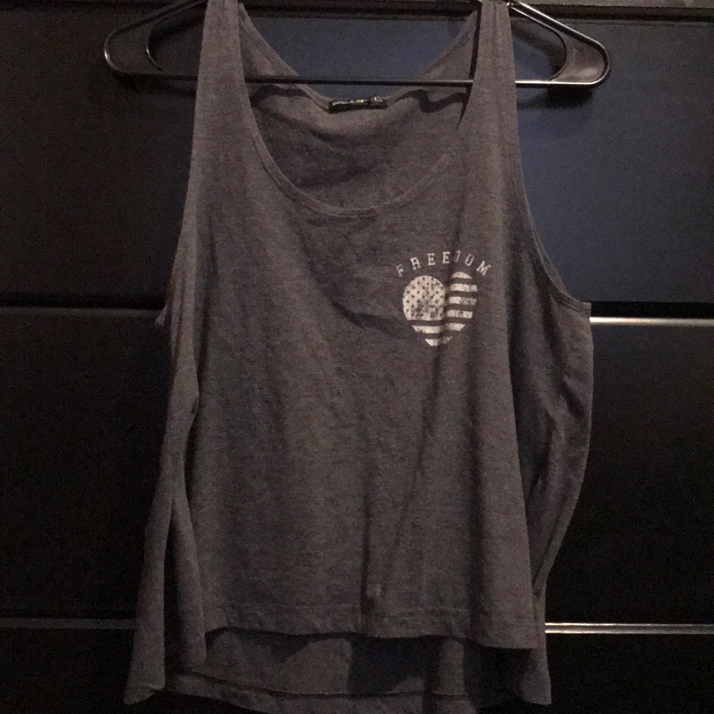 Grey tank top w/ “Freedom” on front and “USA” on back.