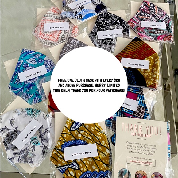 Free One cloth mask with every purchase $20 and above!