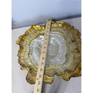 Freeform Art Glass Platter by Akcam Turkey Ombre Amber Gold Pearl Shell Oyster