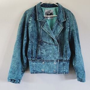 Freego Vintage Acid Wash Teal Totally 80s Jean Jacket Medium