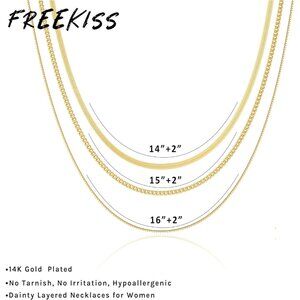 Gold Chain Size And Package: Inner Herringbone necklace Width: 3 mm,length: 14"+2" extension. Chain width: 1.5mm, length: 16.5". Our dainty jewelry packaged with a delicate gift box , You will get dainty gold necklace in a wonderful small box