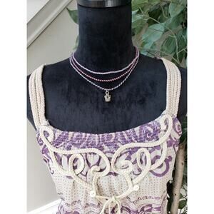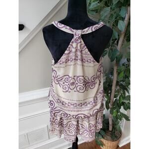 Freelance Tunic Top Womens Large White Purple Print Smocked Waist Ruffle Hem