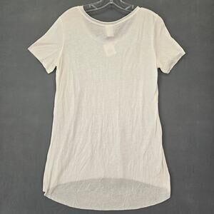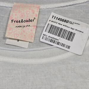 NEW Freeloader Women's Shirt Size S White Grunge Raw Hems Classic Short Sleeves Scoop Neck Lightweight Sheer Tee Top