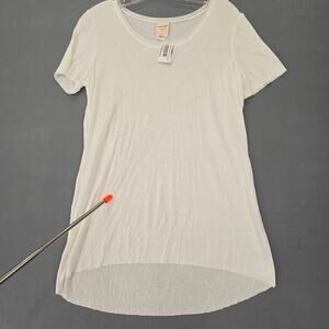 Freeloader White Shirt Tee NEW Grunge Raw Hem Short Sleeves Scoop Neck Women's S