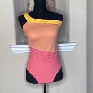 Freely Colorblock One Shoulder One Piece Swimsuit Size M