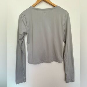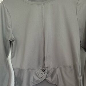 Freely Grey Front Twist Long Sleeve Athleisure Top with Thumb Holes