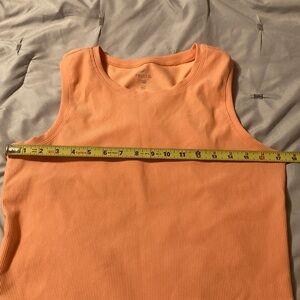 Elevate your wardrobe with this peach ribbed sleeveless tank top. Perfect for layering or wearing on its own.