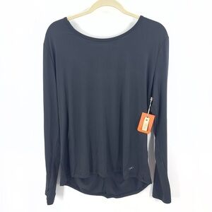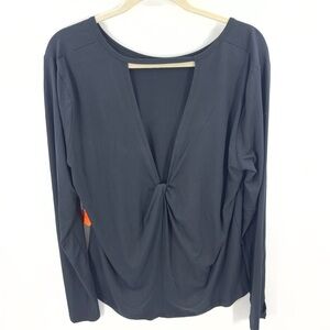 Freely Womens Darla Twist Long Sleeve Top Size XL Black Stretch Shirt NWT