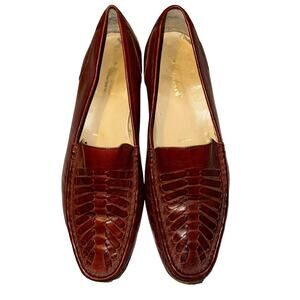 Freeman Loafers Red Brown Leather Woven Round Toe Slip On Shoes Men 10 Academia