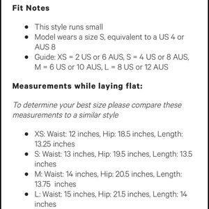 Measurements for size small