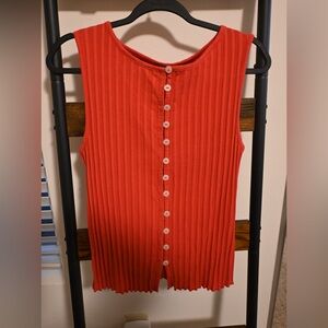 Elevate your style with this chic red sleeveless top. Featuring a button-down design, it's perfect for any occasion.