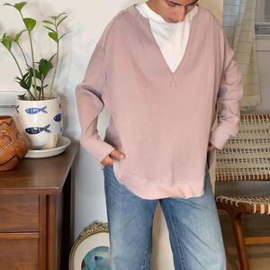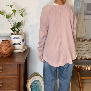 Soft and cozy lilac thermal from free people. we the free size xs with exaggerated v neck, perfect for layering. henley with elbow patches. super oversized henley #sweater