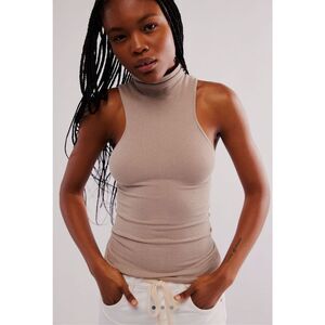 Free people always ready seamless textured turtleneck tank mocha meringue