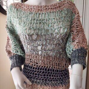 Beautiful colored crochet sweater wear with your favorite long sleeve shirt or tank top. Lots of life left.