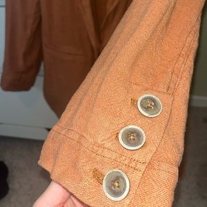 This is an orange thicker jacket with button, never worn, relaxed blazer type fit, trendy styled