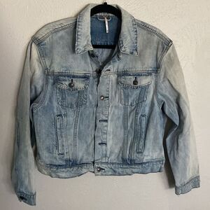 Free People Paisley Quilted Patchwork Boho Distressed Denim Jean Jacket