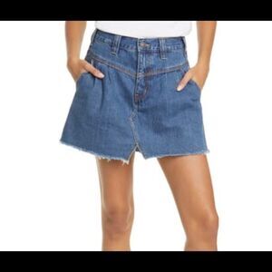 This is a free people Saratoga blue Jean skirt in a size juniors 26. Retails for $78. Brand new with tags.